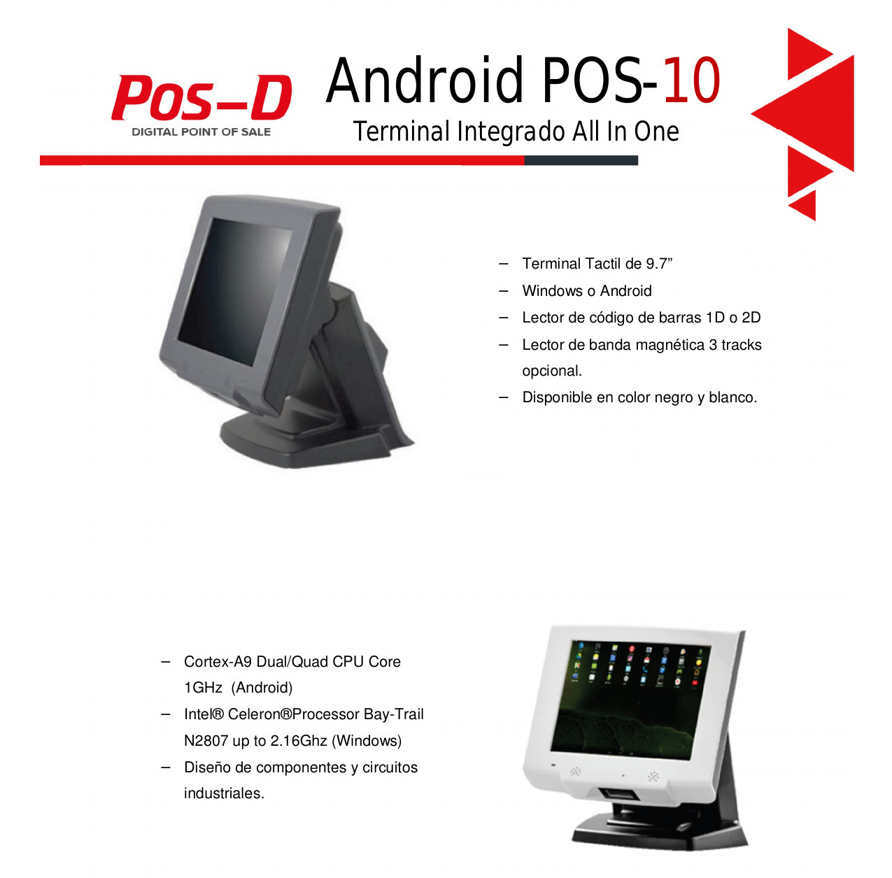 COMPUTADORES INTEGRADOS ALL IN ONE – > MARCA: POS-D -> MODELO: PD-ANDROID POS 10 ; realizamos entrega en las ciudades de Lima, Arequipa, Cusco , Moquegua , Tacna , Ica , Chiclayo , Trujillo, Cajamarca, Piura, Tumbes, iquitos, Huancayo , Ayacucho , Pucallpa, Huanuco , Cerro de Pasco ; llevamos mas de 10 años comercializando POS-D en Peru , somos especialistas importando computadores integrados all in one, equipos pos , terminal integrado, terminal integrado all in onePOS-D ECOMINI Blanco Cortex A9 DuoCore 1 GHZ, 1GB RAM, EMMC 8GB, Android 4.2, touch 10″. Android 4.2