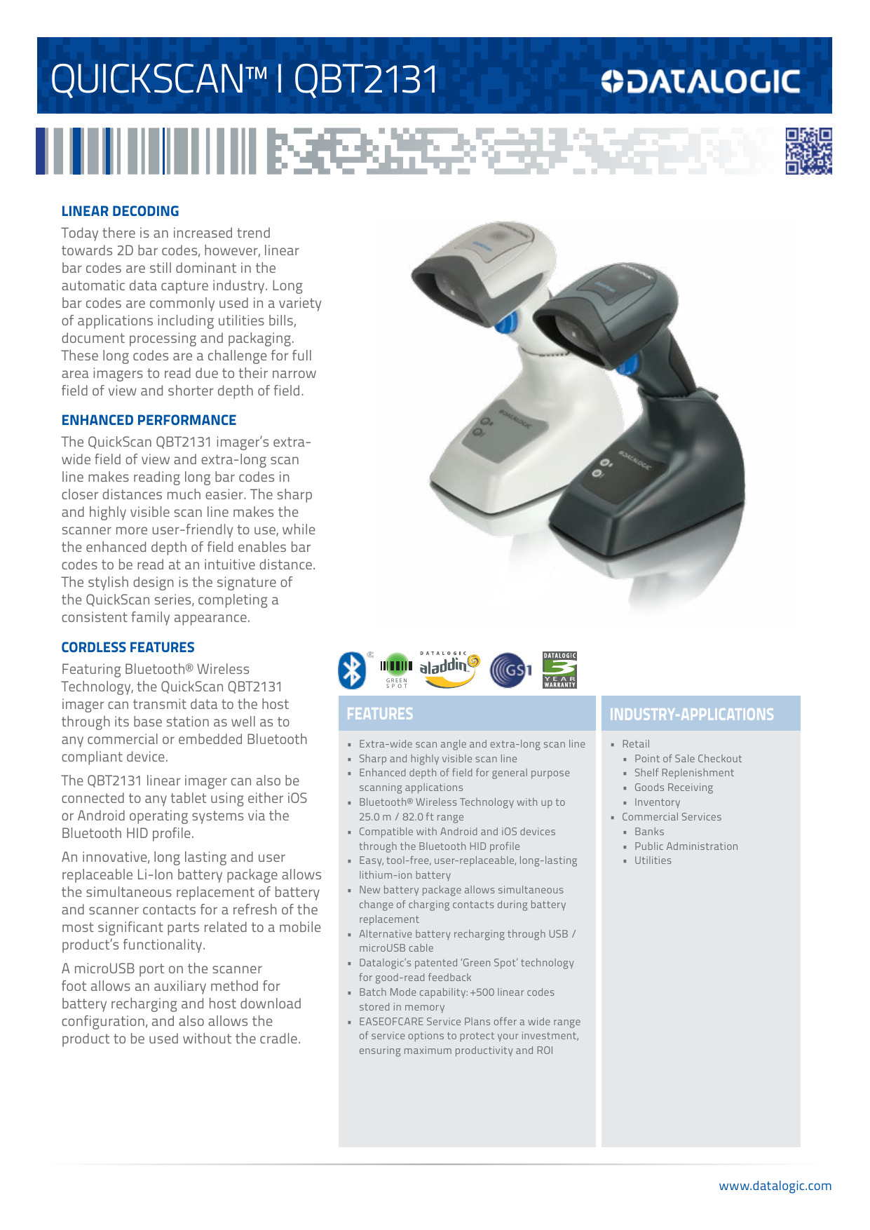 LECTOR DE CODIGO DE BARRAS – > MARCA: DATALOGIC -> MODELO: QBT2101-BK-BTK+ ; realizamos entrega en las ciudades de Lima, Arequipa, Cusco , Moquegua , Tacna , Ica , Chiclayo , Trujillo, Cajamarca, Piura, Tumbes, iquitos, Huancayo , Ayacucho , Pucallpa, Huanuco , Cerro de Pasco ; llevamos mas de 10 años comercializando DATALOGIC en Peru , somos especialistas importando lector de codigo de barras, equipos pos , lector de codigo de barras portatil , lector de codigo de barras 1dESCÁNER DE CÓDIGO DE BARRAS DATALOGIC QBT2101-BK-BTK+